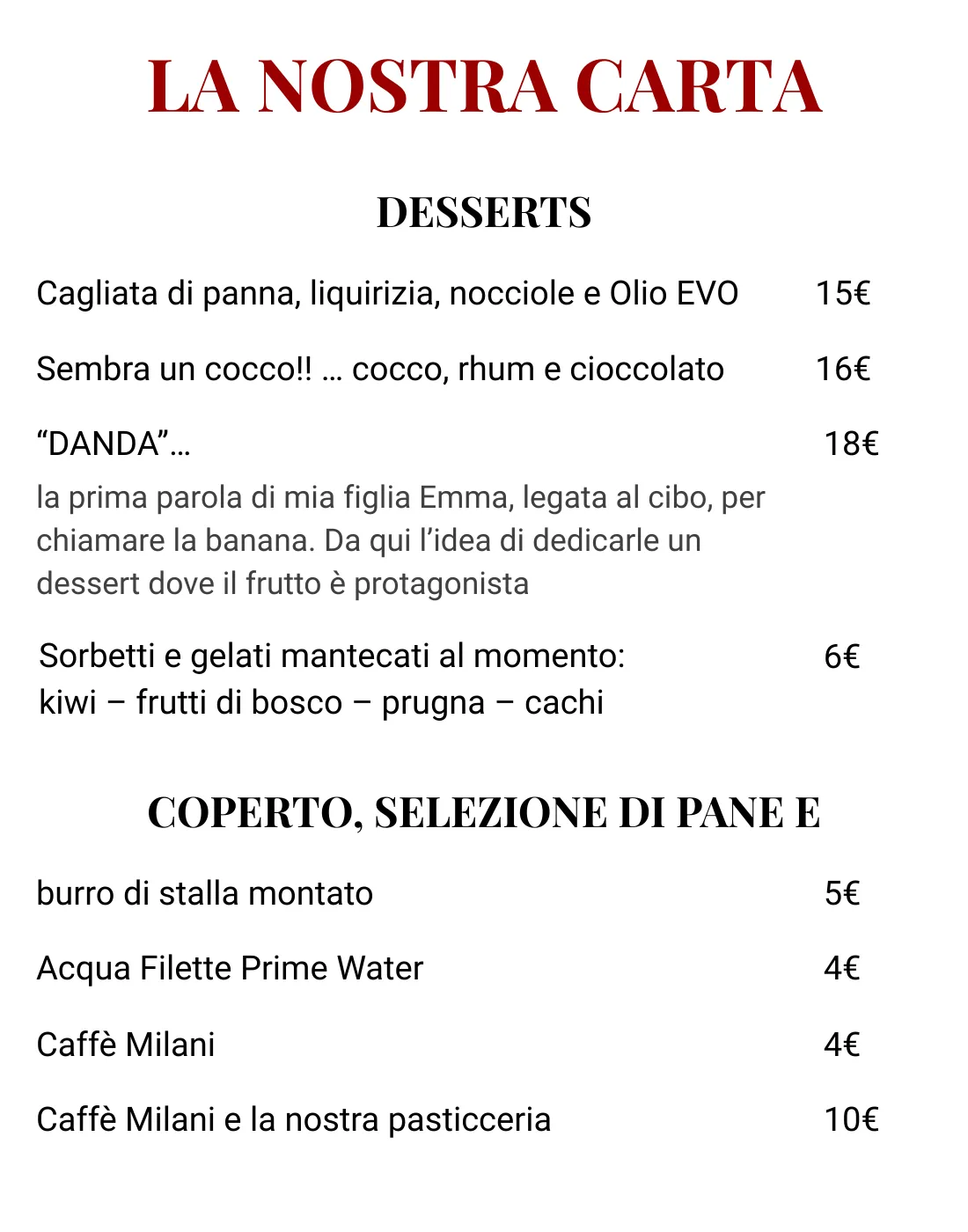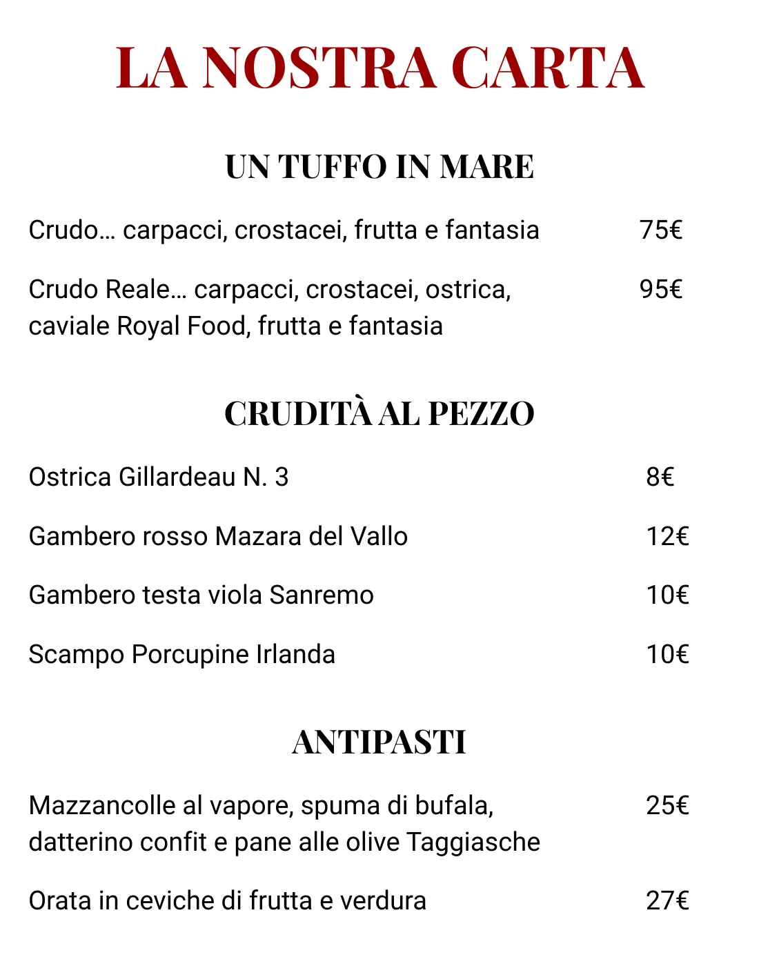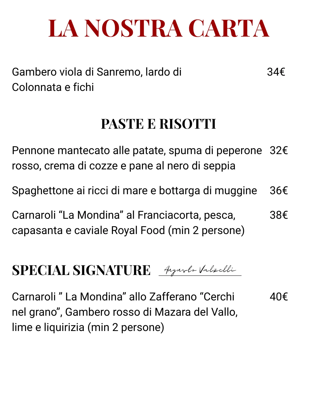 Menu alla Carta